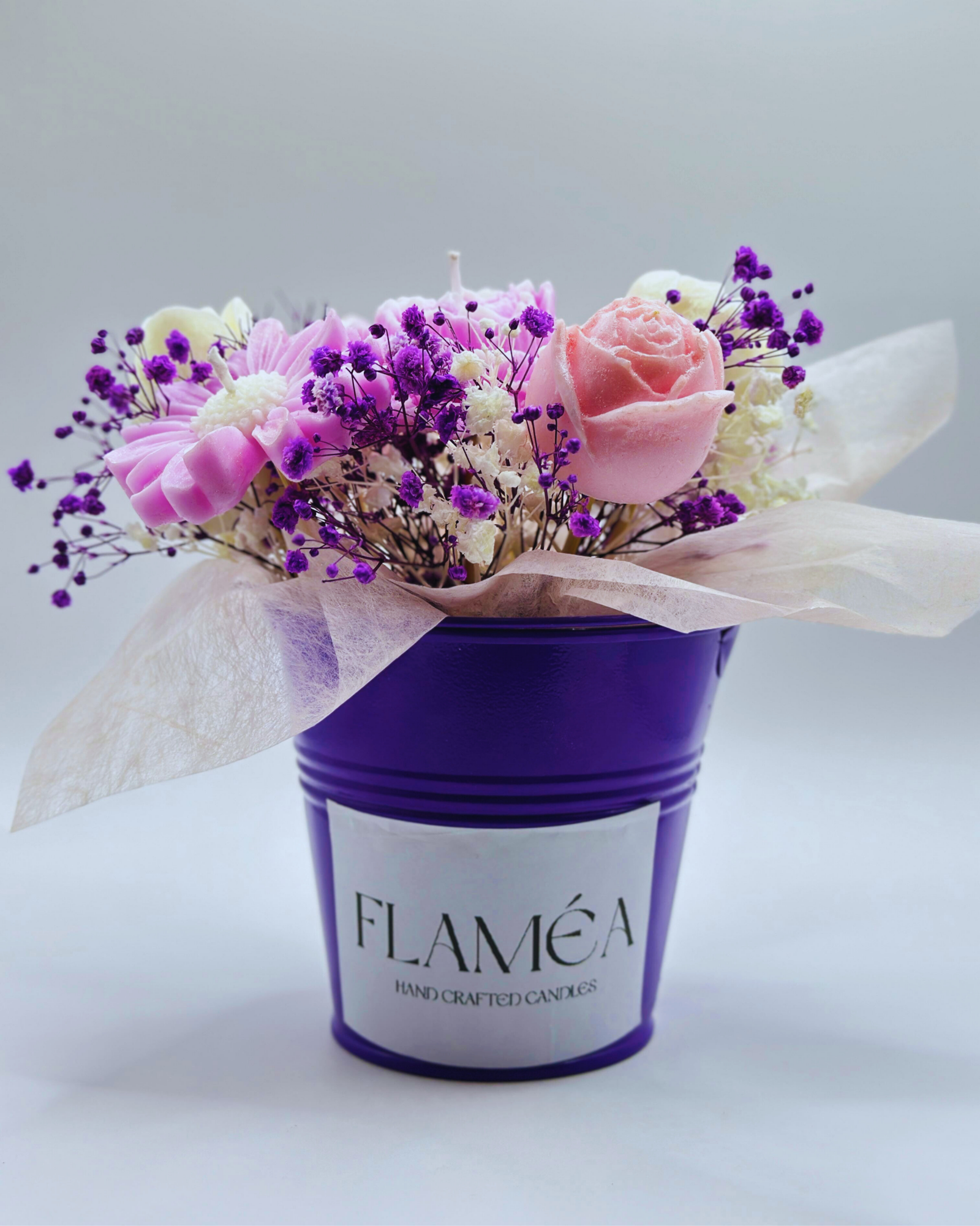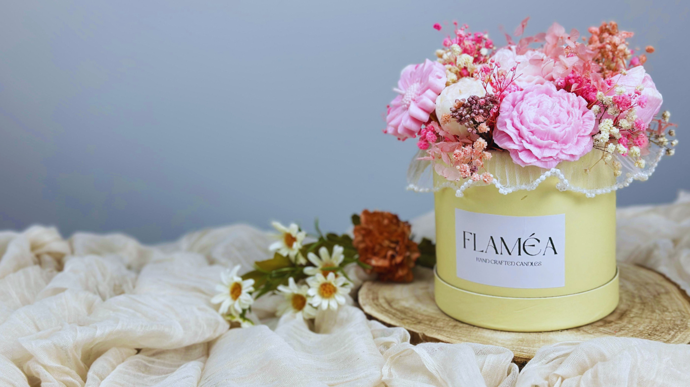 Celebrate elegance this month with our Floral Luxe bouquet candle. Handcrafted and customizable, these floral-inspired candles bring romance, charm, and a touch of luxury to weddings, baby showers, or gifting. Don’t miss this month’s special – light up your moments with Flaméa.